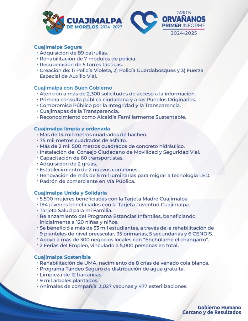 Primer Informe: destaca Orvañanos más de 60 logros en Cuajimalpa