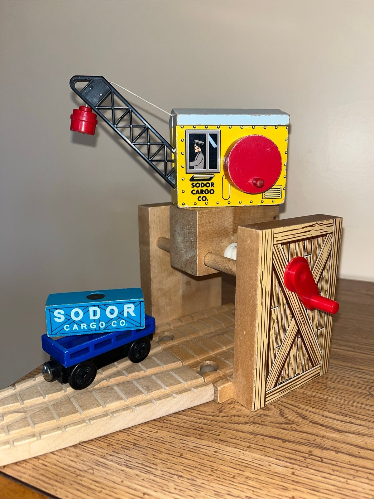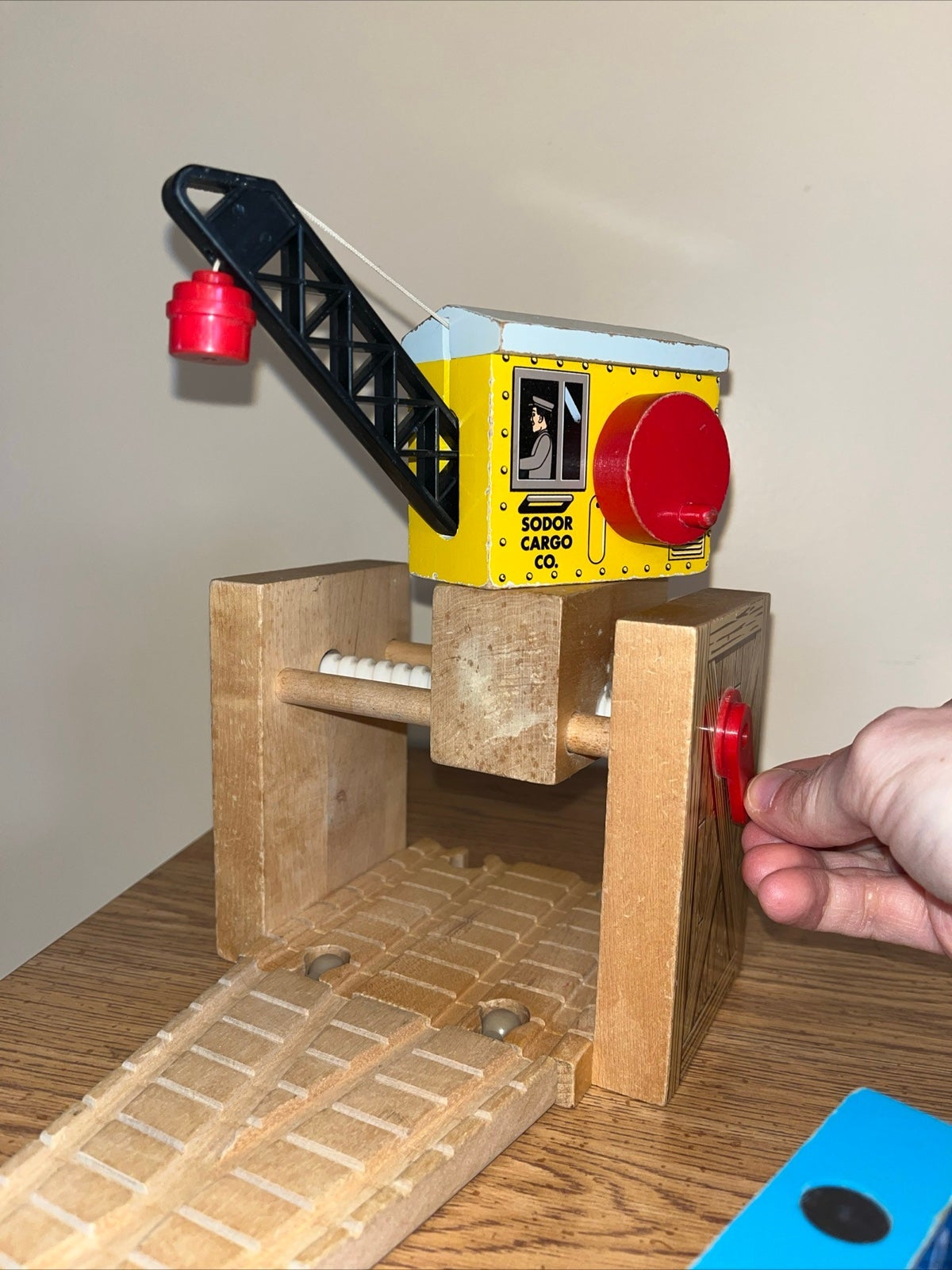 SODOR CRANE CO. YELLOW CRANE W “V” SHAPE CLICKITY CLACK TRACK PIECE